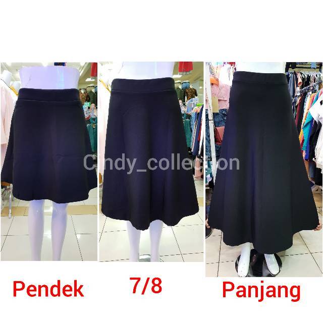 Rok Megar Pendek Flare 78 Panjang Scuba Tebal ROK Hitam cewek wanita ROK PANJANG