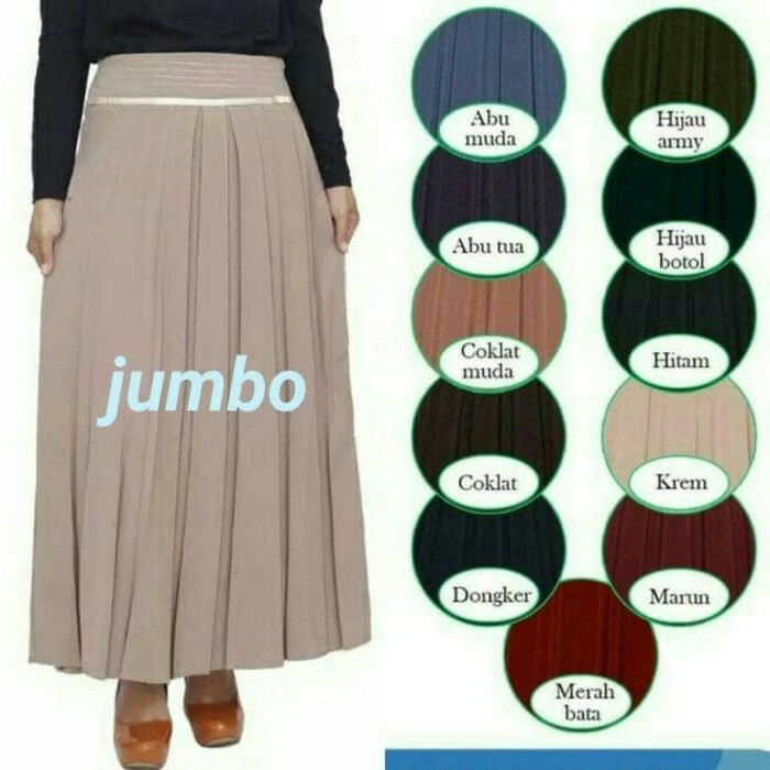 Rok kerja wanita model plisket ukuran jumbo kotif polos bahan ferari plisket