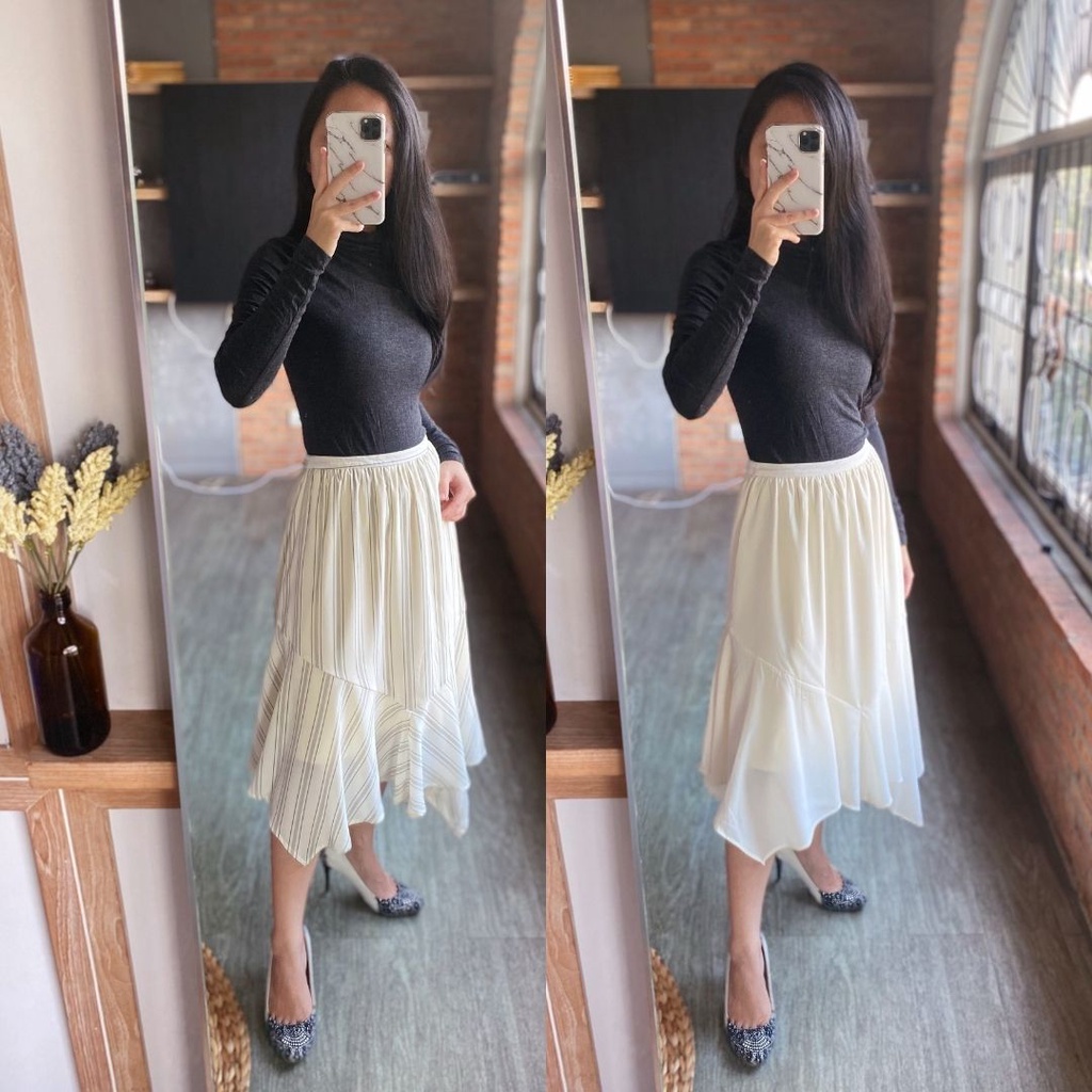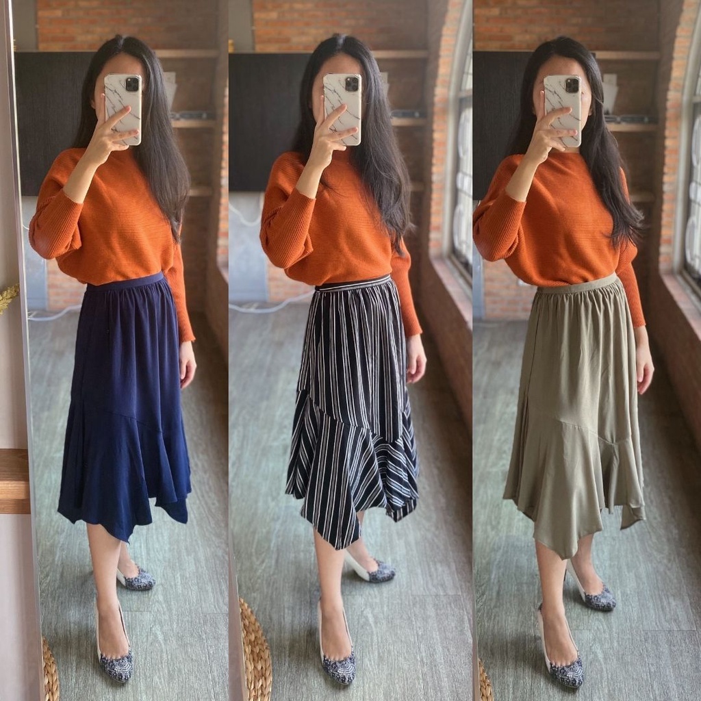 Alasan kenapa harus beli GU UNQ Nuance Midi Skirt - Asymmetric Skirt - Rok Wanita Original Branded sekarang