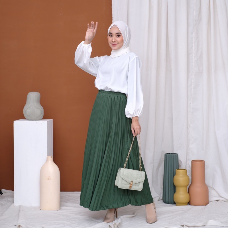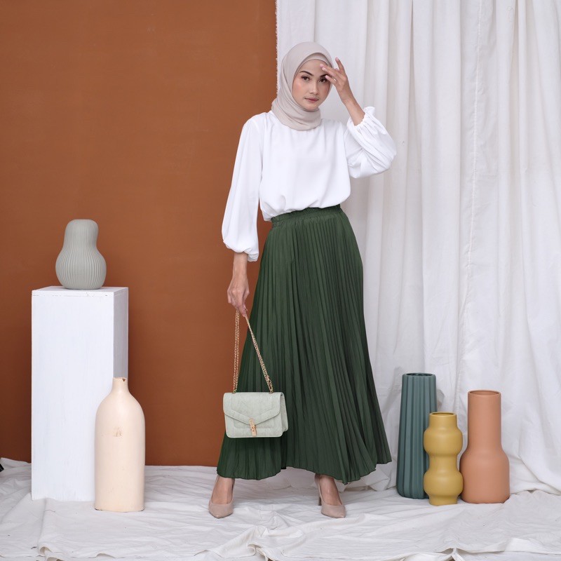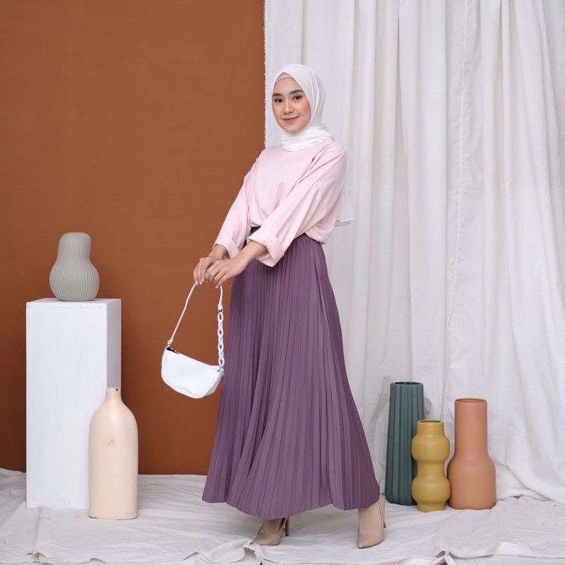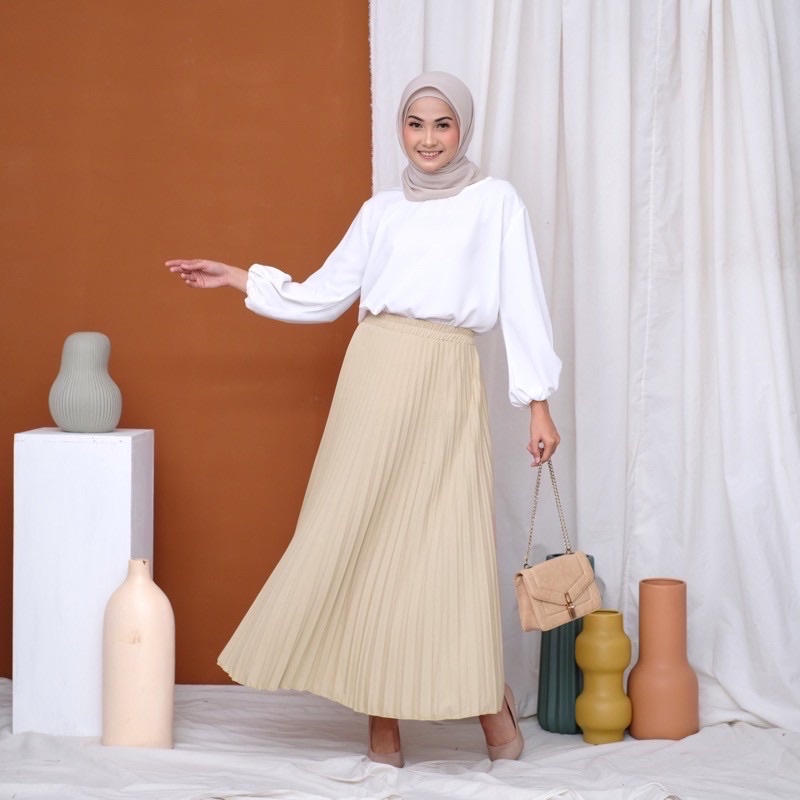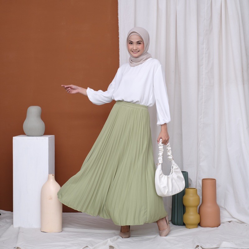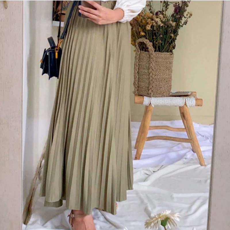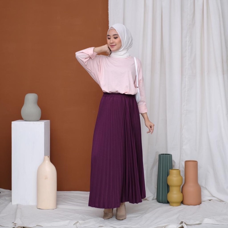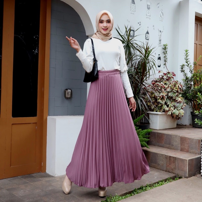 Harga ROK PLISKET 256 MURAH PREMIUM HYGET MAYUNG SALE POLOS REMPEL MUSLIMAH MODELLANO FLARE SKIRT FLOWY