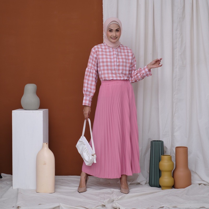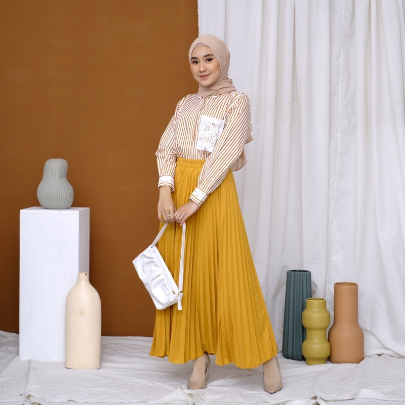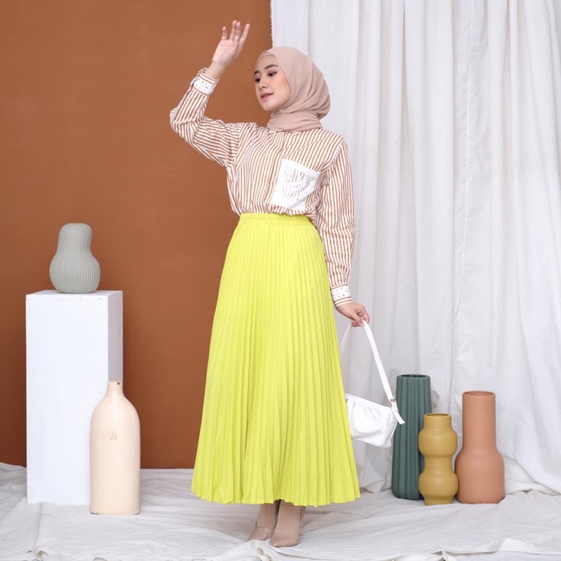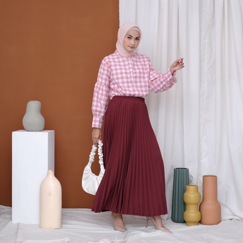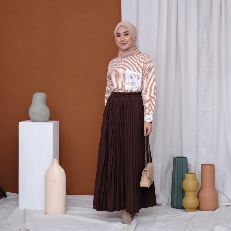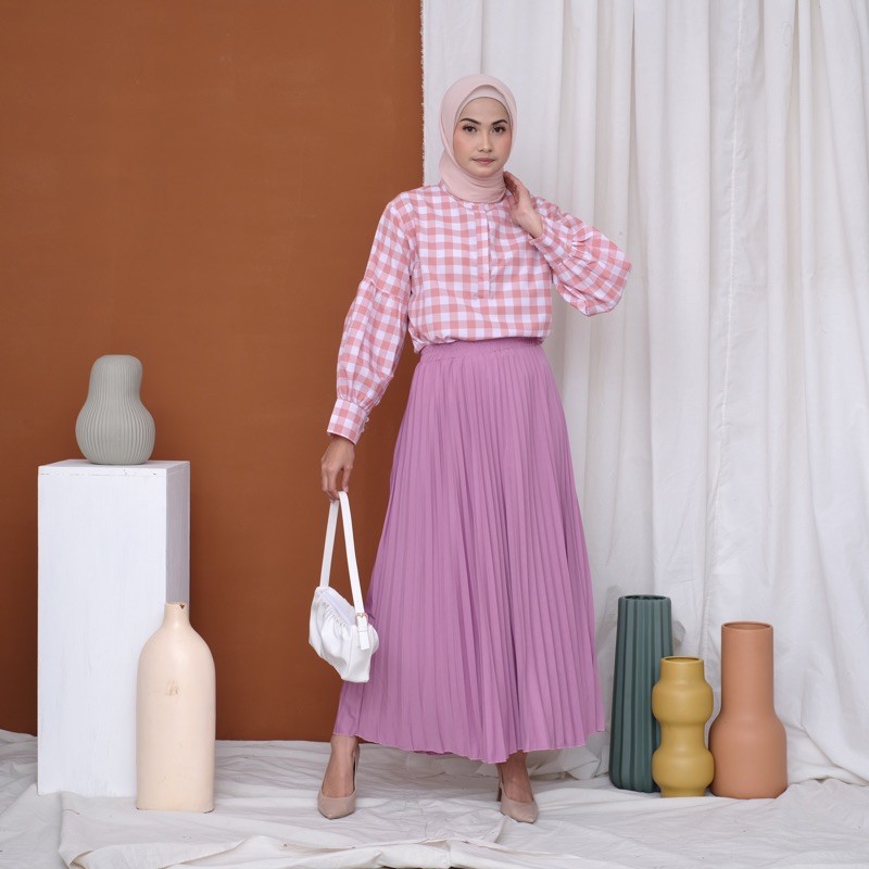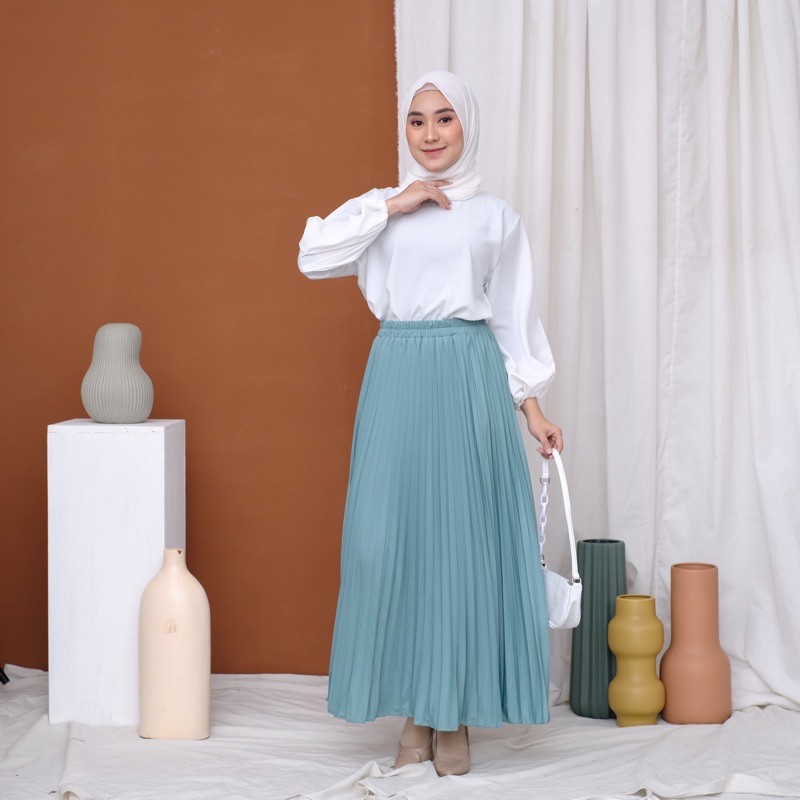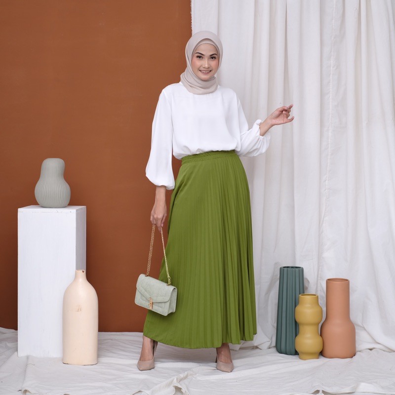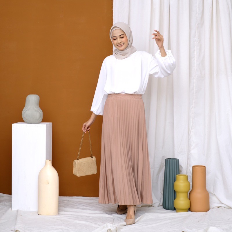 Harga ROK PLISKET 256 MURAH PREMIUM HYGET MAYUNG SALE POLOS REMPEL MUSLIMAH MODELLANO FLARE SKIRT FLOWY